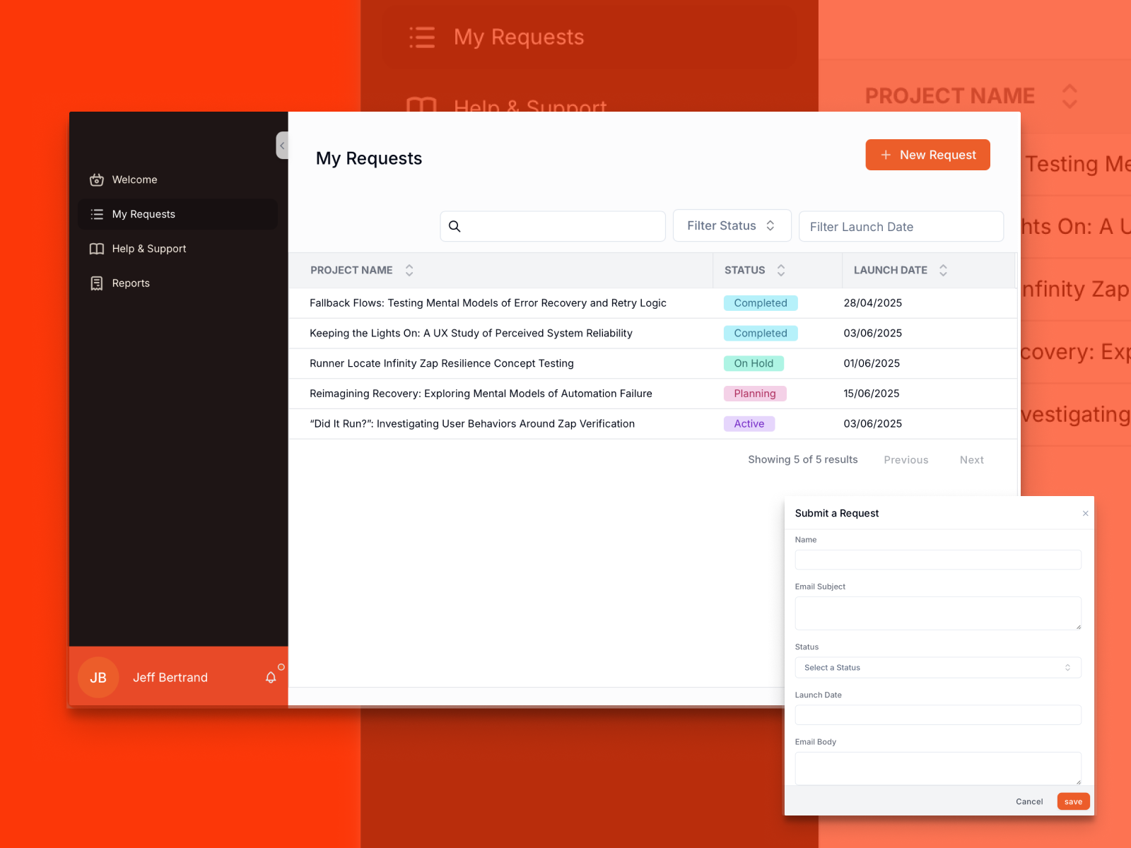 I designed a new internal web tool to centralize and streamline research outreach for designers. The goal was to make it dead simple to request, manage, and track participant emails—without having to be an ops expert or manage a campaign yourself.