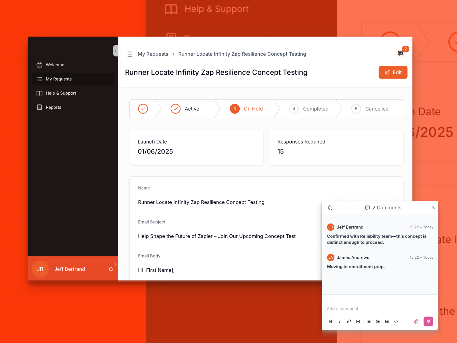 Request Details Page for Researchers, Account Managers and Operations Teams to coordinate job delivery