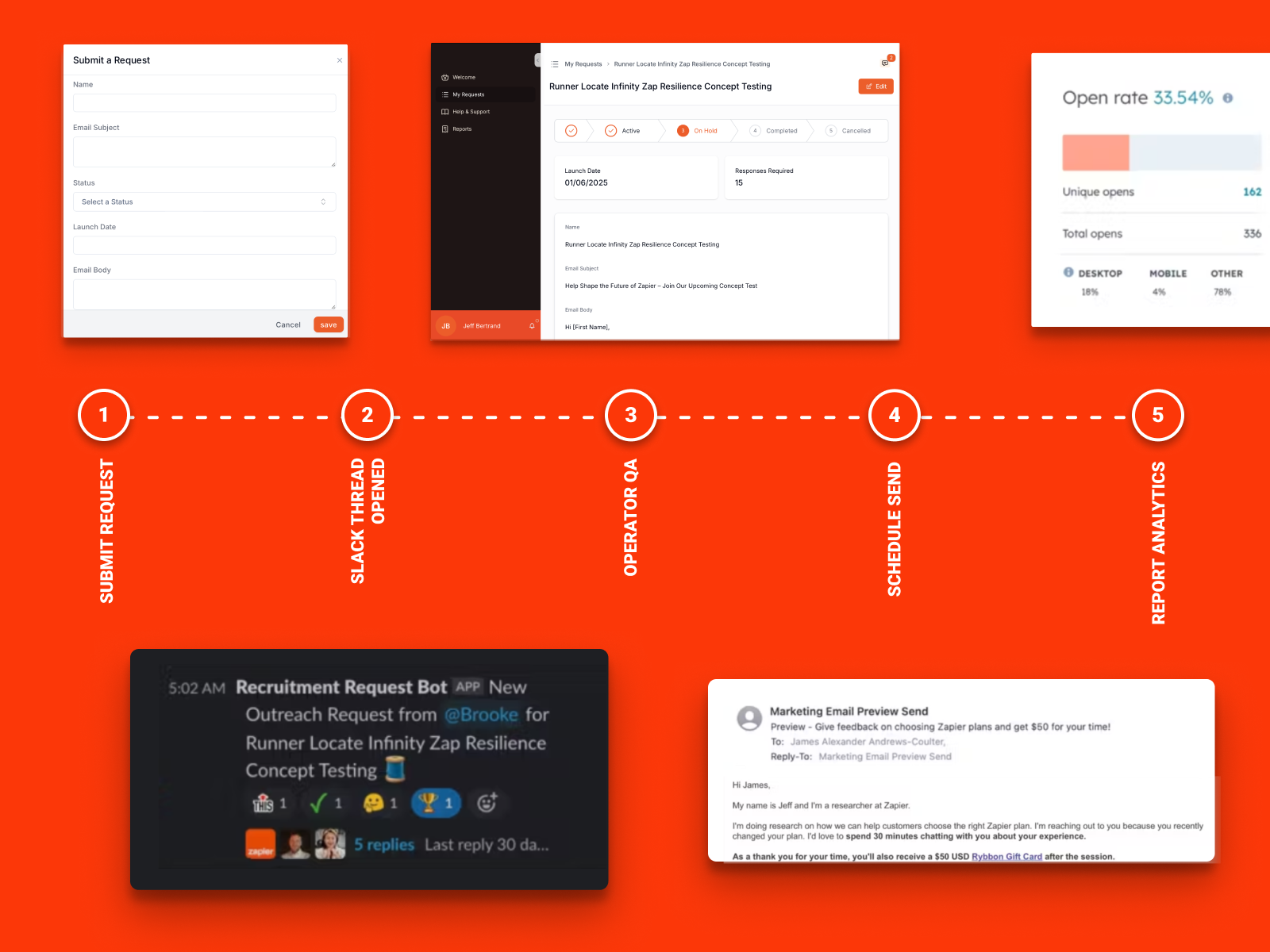 We built the product iteratively, working in tight cycles with feedback from researchers, operations, and CX folks. I partnered closely with Revenue Ops and Marketing Tech to make sure we were solving the right problems, staying compliant, and scaling in the right ways. Weekly reviews, lightweight usability tests, and async Slack feedback helped us stay aligned and adapt quickly.